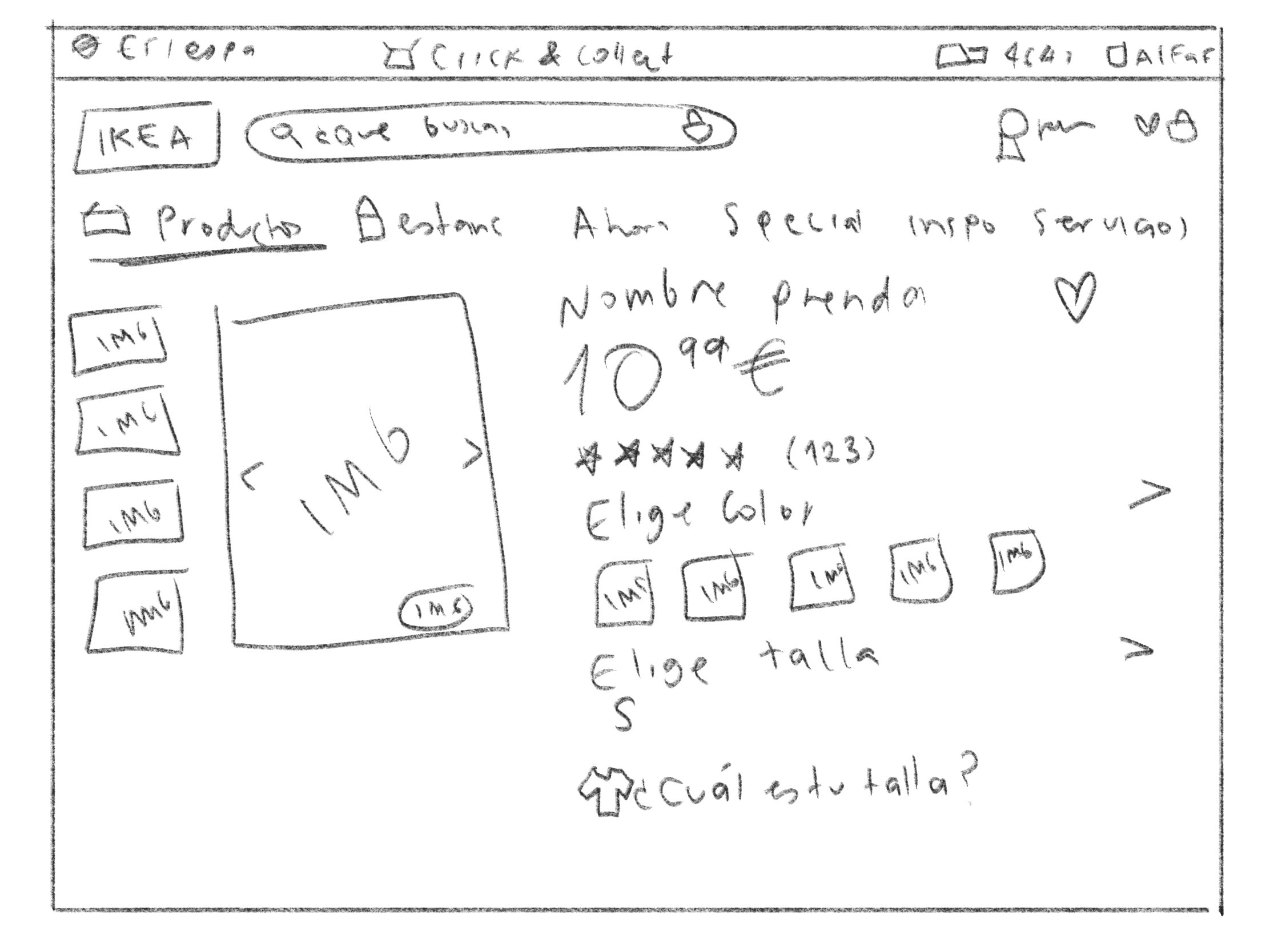 En esta etapa, trasladé los bocetos principales a wireframes digitales, para comprender si los elementos funcionaban y respetaban la estructura original de la web de IKEA, manteniendo la coherencia visual y de navegación.