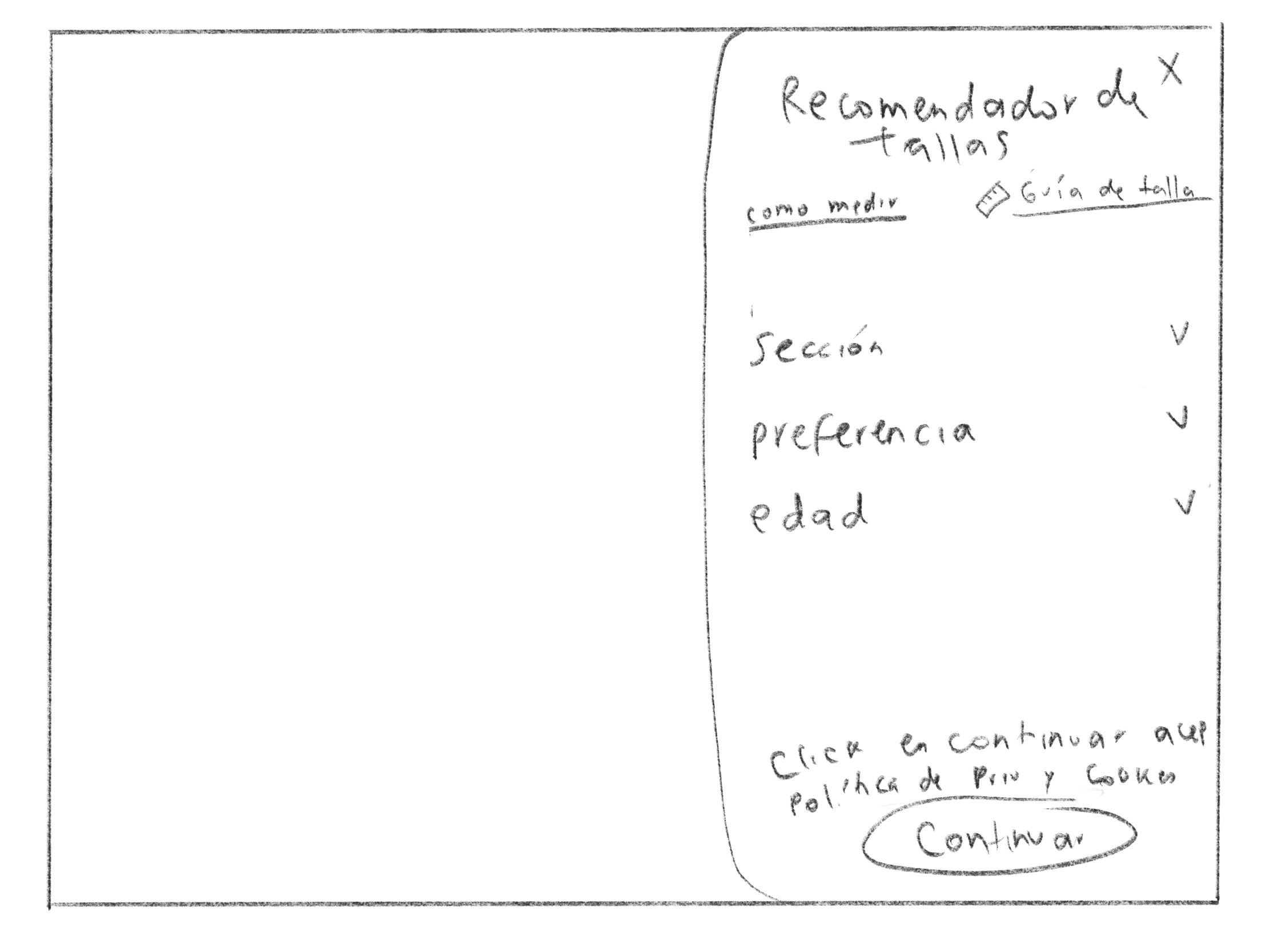 Diseñar un flujo de compra centrado en la elección de tallas, incorporando un recomendador que mejore la experiencia y reduzca errores en la compra.